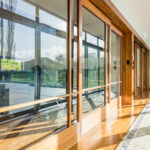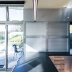 Also manufactured by MCL Joinery are various timber features such as bespoke Oak glazed sliders and a uniquely curved stair rail.