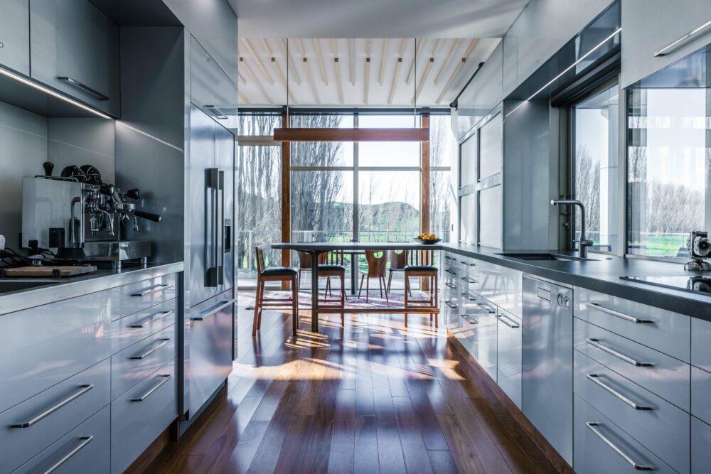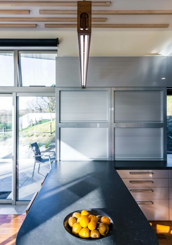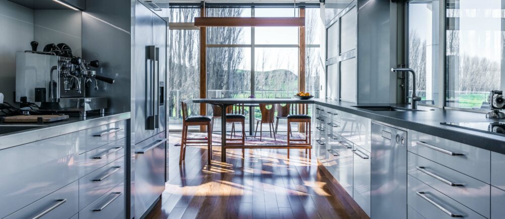 This light filled home with many complementary contrasts has a stylish and functional kitchen making the most of its elevated views across the property.