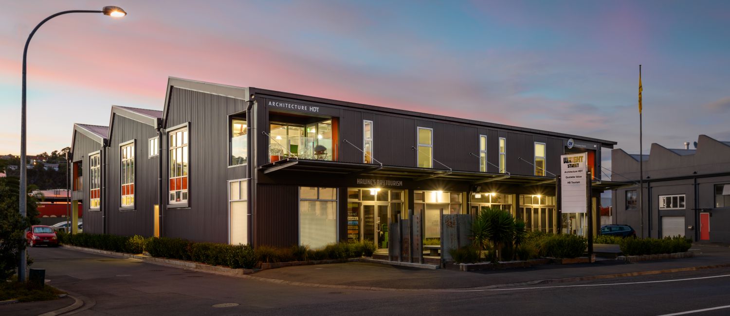 This project saw the refurbishment and transformation of a less than appealing building to 2 floors of high spec office space. The Architecture draws on the saw tooth woolshed building forms common in Ahuriri that provides natural light creating an enjoyable and welcoming commercial space.